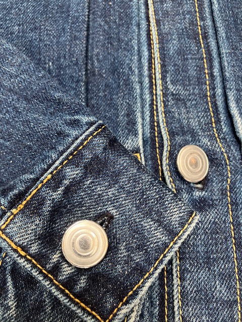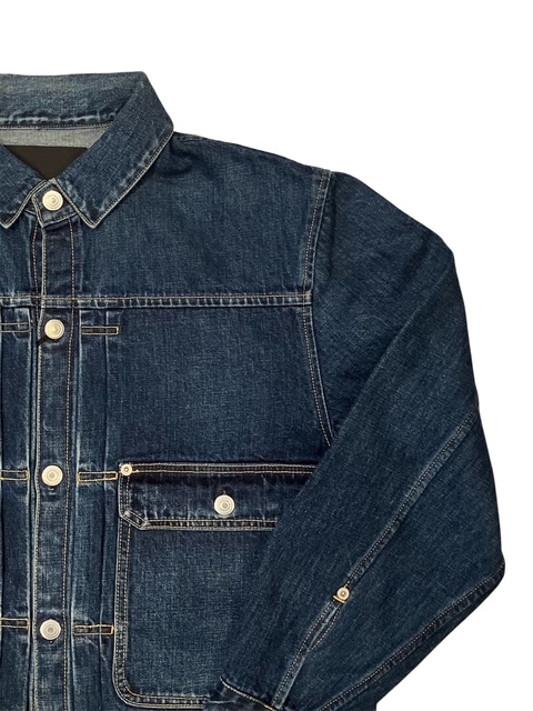 ES:S エス デニム ショートトラックジャケット 2nd 25GJK4-SVD12V-201 MATERIAL 表地:12oz USED VINTAGE COTTON DENIM 100% MADE IN JAPAN 12オンスのややライトなGジャンです。 ヴィンテージデニムを再現したアタリや 素材感はこなれた印象ですが、柔らかくて 軽さを感じるデニム生地です。 デザインベースは2ndタイプですが 裾口に向けてややテーパードさせたフォルムや 着丈をすっきり目に設定していたりとモダンに 仕上がっています。 バーンストーマーのチノパンなどボリュームのある パンツとの相性は抜群ですが、当店ではよりクリーンに インコテックスのウールトラウザースやストレッチチノなど、 クラシコなアイテムとの組み合わせをおすすめいたします。 SIZE S 着丈55 肩幅49 バスト106 裾口幅49 袖丈58 M 着丈56.5 肩幅50 バスト109 裾口幅51 袖丈59 L 着丈58.5 肩幅52.5 バスト116 裾口幅53 袖丈59.5 単位:センチ ※手作業による採寸の為、若干の誤差がありますことをご了承ください。