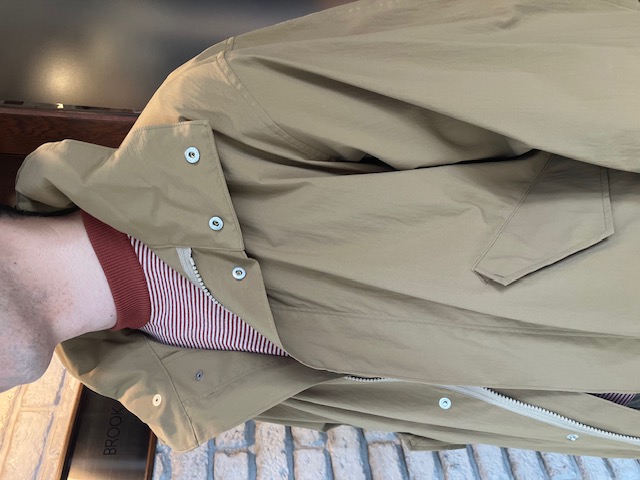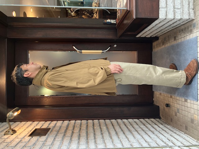 襟を倒してVゾーンを作ればショートトレンチとして、襟を立てればスタンドカラーで、
