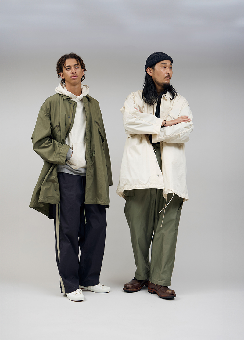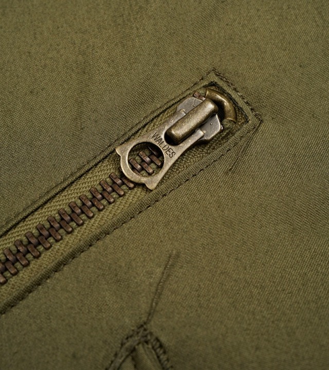 米国のM51フィールドパーカーと英国のMk3ジャケットのディテールをミックス。単純にヴィンテージの完全レプリカとしてコピーするに留まらず、ヴィンテージを完全に解析した上で、その機能性をミックスさせ現代に蘇らせました。ディテールとファブリックに対する造詣と愛情を持つ、ナイジェル・ケーボンらしいテクニックです。 ファブリックはコットンナイロンのピンオックス。染めは連染、連続染色です。