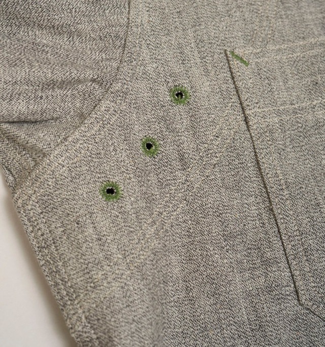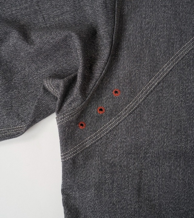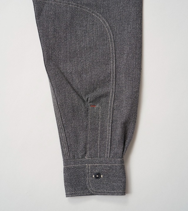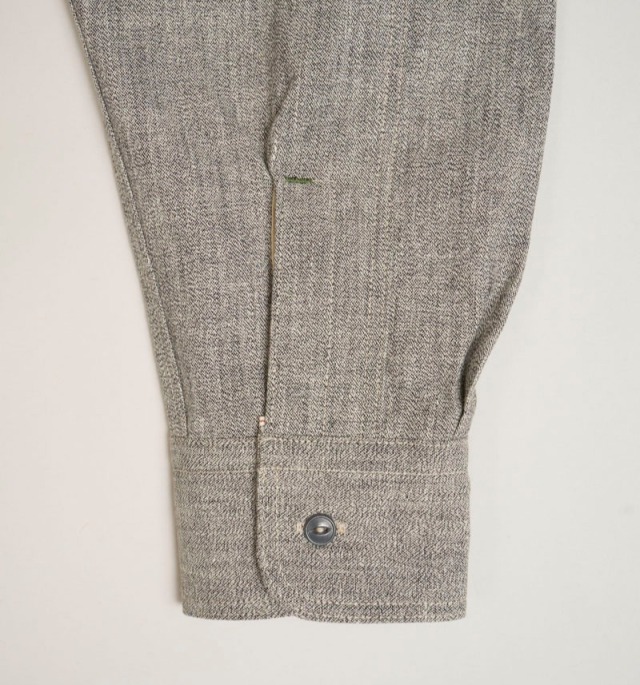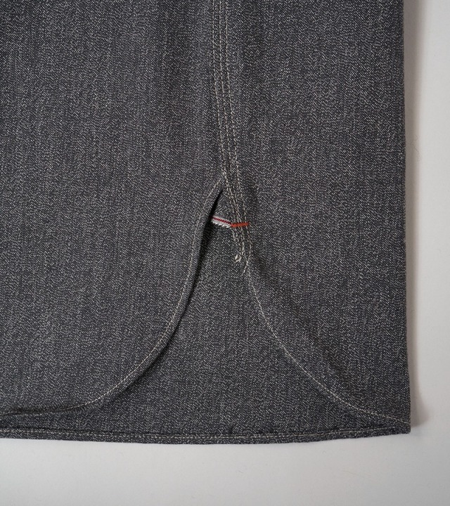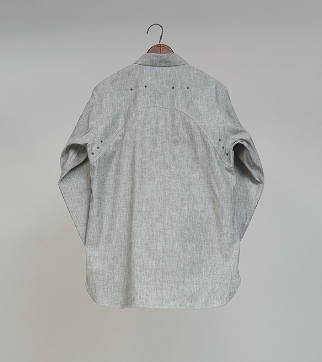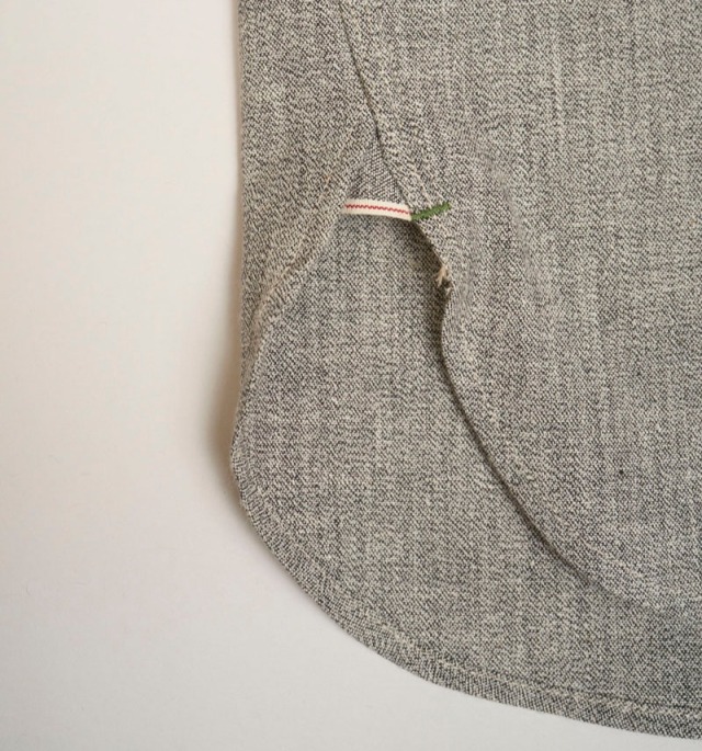 定番メディカルシャツのソルト&ペッパーバージョン。異なるカラーの短繊維をミックスして撚り合わせているため微細なごま塩の表情が特徴です。