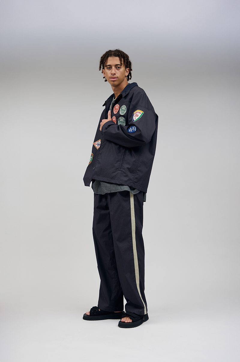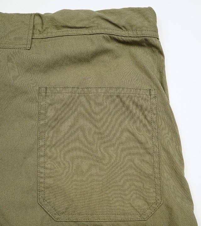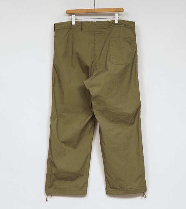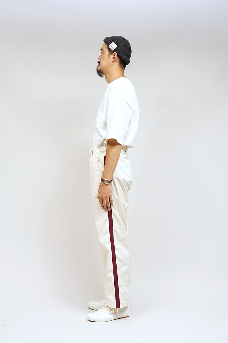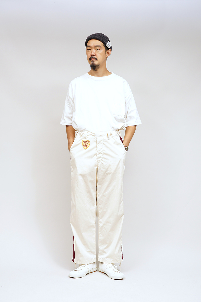 ベースボールパンツとミリタリーオーバーパンツのディテールをミックスした新作パンツです。生地はCOTTON/NYLONのPIN OXを採用。50~60年代に使用されていたコットンナイロンの生地をより強固にしてオンスを高めた、かなりハリコシのあるシャリっとした生地感です。