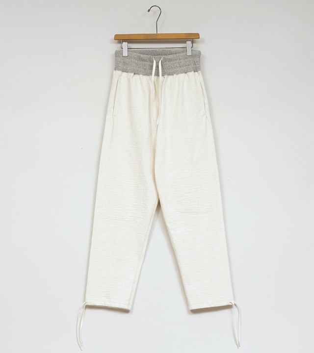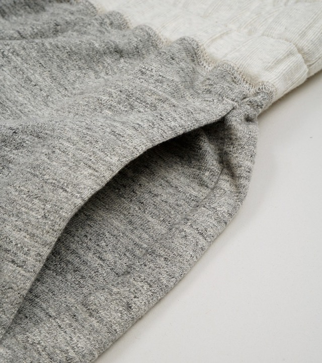 編地の密度を上げつつ、度目(どもく)をコントロールすることで、しっかりした頑丈な着心地を実現しました。ベースにしたヴィンテージは1940年代のUSアーミー、トレーニングパンツ。