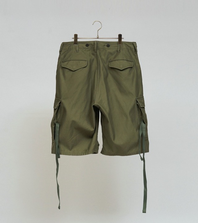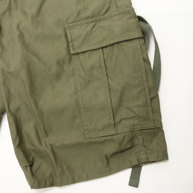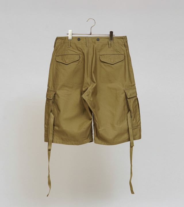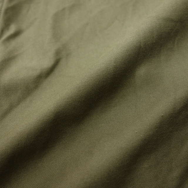 ナイロンは米国で1935年に発明され、ナイロン糸が様々な繊維製品に普及していったのは1950 年以降です。つまり、51年制式採用のM-51の時代にはナイロンは存在していたものの未だ物珍しい素材でしかなく、65年採用のM-65 の頃には爆発的に普及し、コットンとナイロンの混紡糸が使用されたという事です。合成繊維がごく普通のものである私たちの感覚からするとちょっと興味深い事実です。バックサテンに製品洗いをかけた素材は経年変化も楽しめる素材。高い完成度を誇るショートパンツは他に代わりになるアイテムがありません。