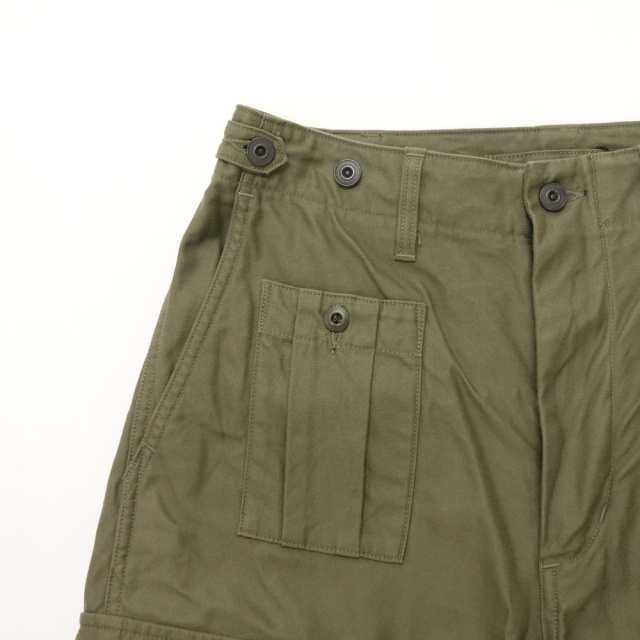 米軍のM-43と、カーゴパンツの傑作M-51、そして英国陸軍のビンテージをミックスしたデザインです。ファブリックはバックサテン。非常に剛性の高い組織です。素材はM-51同様にコットン100%。