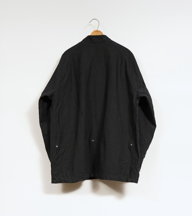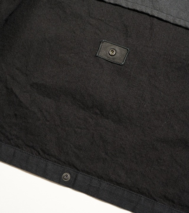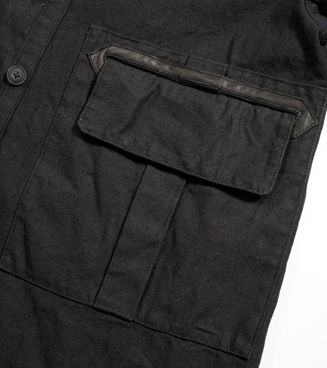スウェーデン軍の汎用ワークジャケットと英国フィッシングコートのディティールを折衷したデザイン。総裏仕様にする事で防風防寒の機能も付与しました。ダークブラウンのファブリックはヘビーオックス、チャコールグレーのファブリックはブラックデニムです。