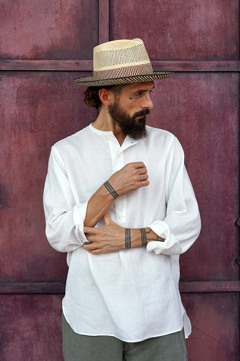 ナイジェル・ケーボン ヘンリーネックシャツ - ヘンプ