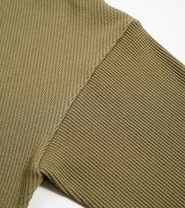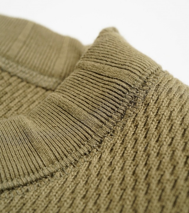 素性と番手の異なる糸で編み上げているため凹凸に満ちた風合いが大きな特徴です。