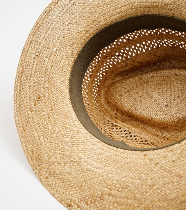 直射日光と紫外線対策として有効なストローハット。本製品はローガ草というココヤシの繊維を採用。