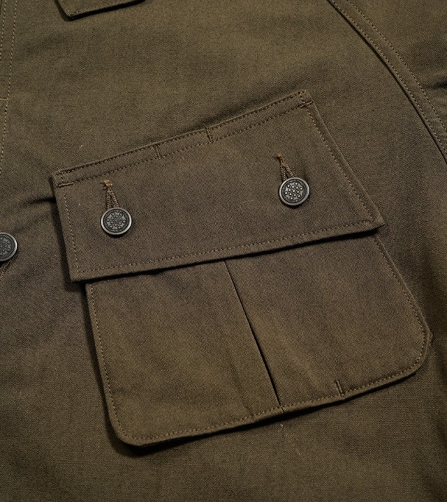 ベトナム戦争に小隊(PLATOON)長として従軍し過酷な戦場を生きぬいたヴィンセント・オカモトが着用したフィールドジャケットにインスパイアされたデザインです。ミリタリーウェアは個人の所有物ではなく、あくまでも政府からの貸与品ですので個人が勝手にカスタマイズすることは本来ご法度なのですが、しばしばカスタマイズされたヴィンテージも存在します。