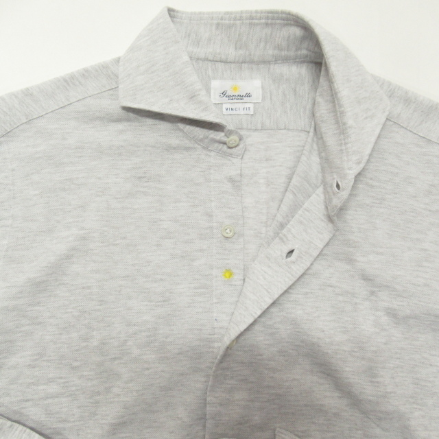 giannetto(ジャンネット)鹿の子シャツ<br> A6340V-84-03 71183 VINCI FIT<br> COLOR 01/WHITE<br> 03/Light GREY<br> MATERIAL コットン100%<br> MADE IN イタリア<br> ジャンネット VINCI FIT 鹿の子シャツ<br> シャツブランドであるジャンネットの鹿の子素材のシャツです。<br> コットン100%の長袖シャツ。<br> ソフトな素材がとても気持ちの良いシャツです。<br> 着丈がやや短く設定されており、裾を外に出しての着用も可能です。<br> サイズ感はベーシックです。<br> 一枚で着ても、ジャケットなどアウターと組み合わせてもおさまりのよい襟形。<br> ぜひ肌へのやさしいタッチを楽しんで下さい。<br><br> SIZE<br> 37 肩幅42 チェスト100 ウエスト90 裄丈84 着丈70<br> 41 肩幅46 チェスト112 ウエスト103 裄丈88 着丈73<br><br> ●数値単位はcmです。手作業によるサイズ計測のため多少の誤差はご了承ください。