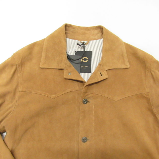 CINQUANTA(チンクアンタ)スエードブルゾン ミディアムブラウン<br> H509-2102-40B7<br> COLOR 40B7/Mid BROWN<br> MATERIAL 表側やぎ革 裏側ポリエステル65% 綿35% 袖裏ポリエステル100%<br> MADE IN イタリア<br> (チンクアンタ)スエードブルゾン ミディアムブラウン<br> レザーウエア専門のファクトリーブランドです。<br> ウエスタンヨークやネオバーボタンといったワークジャケットのテイストを持たせたデザイン。<br> チンクアンタの物作りにおける品の良さを加わえたバランスの良い製品です。<br> 柔らかく丈夫なやぎ革のスエードを採用しています。<br> 体へのなじみ良いフィッティングで着る事ができます。<br> 裏地はスエードと同系色のストライプを配したポリエステル/コットン素材。<br> ミリタリーパンツやデニムパンツと好相性のアウターです。<br> インナーやボトムで季節感や温度を調整しシーズンレスのアウターとしてご提案します。<br><br> SIZE<br> 48 肩幅44 チェスト106 ウエスト98 袖丈64 裄丈88 着丈65.5<br><br> ●数値単位はcmです。手作業によるサイズ計測のため多少の誤差はご了承ください。