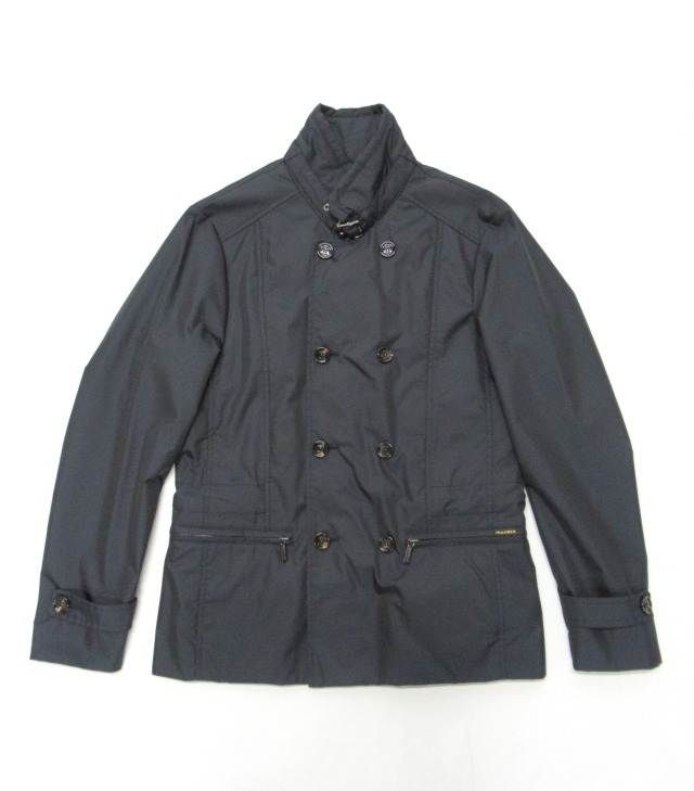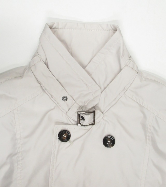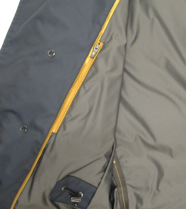 光沢をもつタフタ織りのギャバジン生地で作られた、ダブルブレストの