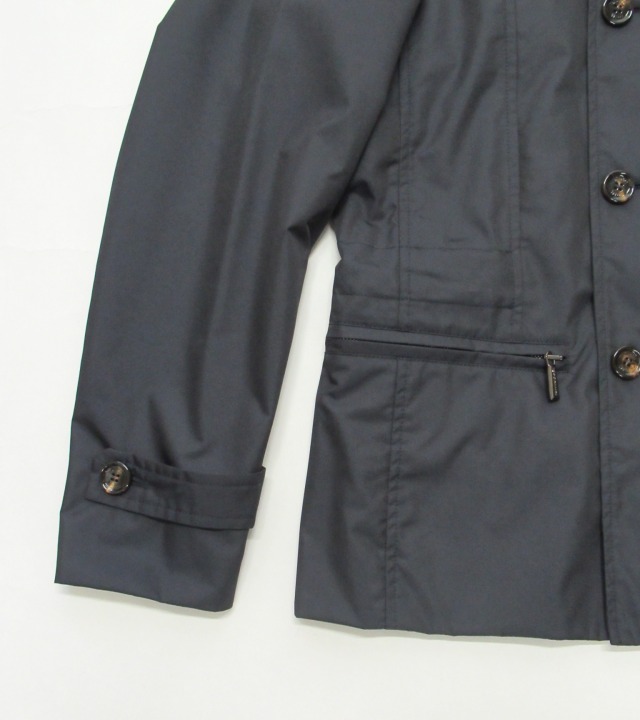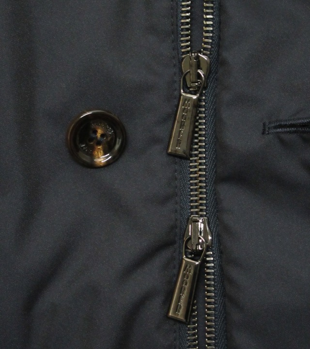 表から見えないダブルファスナーとホーンボタンでフロントを開閉。