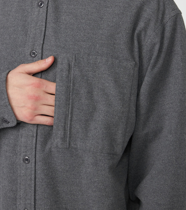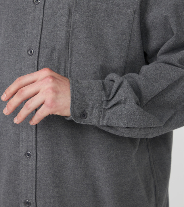 ・オーガニックコットンフランネル素材を使用したフーデッドシャツ