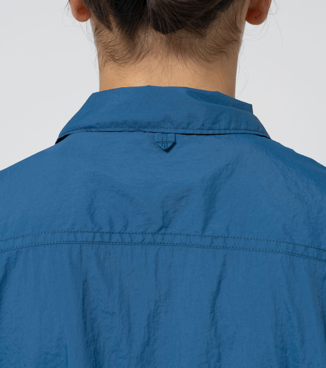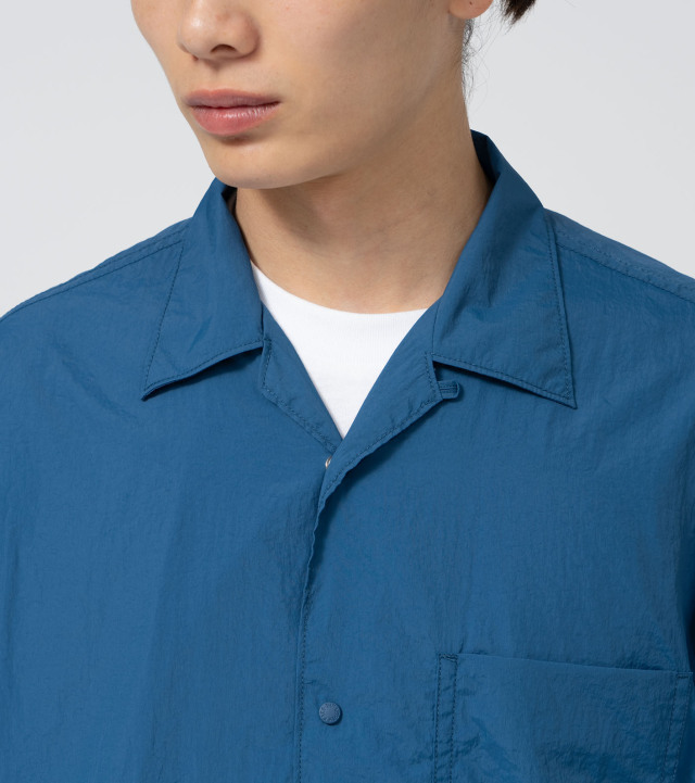 ・程よい光沢感のあるワッシャーナイロンタフタを使用したオープンカラーシャツ