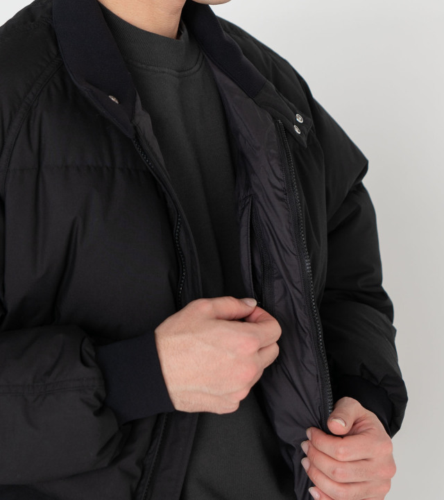・ブランドの定番素材、ミッドウェイト65/35ベイヘッドクロスを使用したフィールドダウンジャケットです。糸はオーガニックコットンとリサイクルポリエステルを採用。はっ水加工を施すことで機能性をプラスしています。裏地には30デニールリサイクルポリエステルリップストップを採用。中わたの光電子® ダウンは人の体からでている遠赤外線(体温)を輻射して、体に戻すことで自然な温かさをキープします。