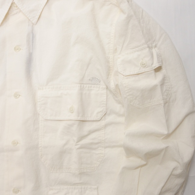 ・80年代のサファリシャツのデザインをミックス。細番手の糸を使用したトリプルステッチによるパッカリングがポイントです。左胸ポケット上にTHE NORTH FACEロゴ刺繍を配置、腕のスムーズな動きを意識したピボットスリーブ設計で、ゆったりとした身幅とボリュームのある袖が特徴のオーバーサイズフィットです。