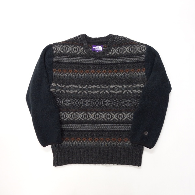・身頃にウールとポリエステルの混紡糸、袖にPOLARTEC® THERMAL PRO® フリースを使用したセーターです。ヴィンテージのフェアアイルセーターをベースに、アウトドアフリースのディテールをミックス。左袖にTHE NORTH FACEボックスロゴを刺繍しています。