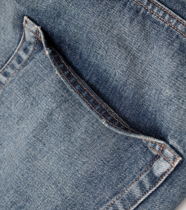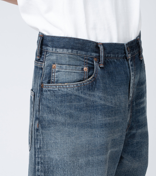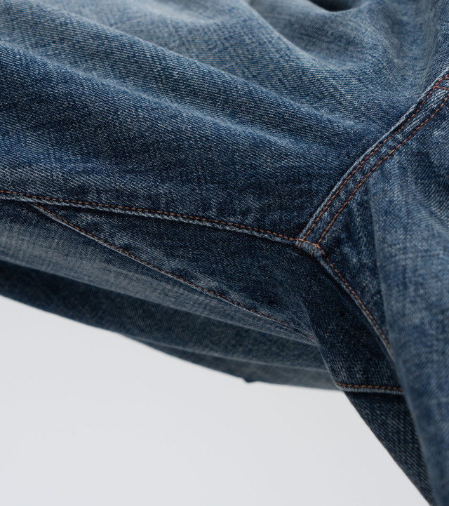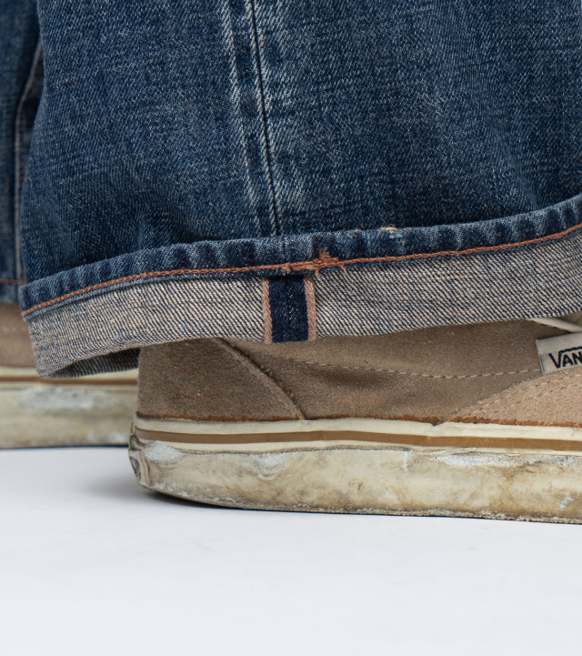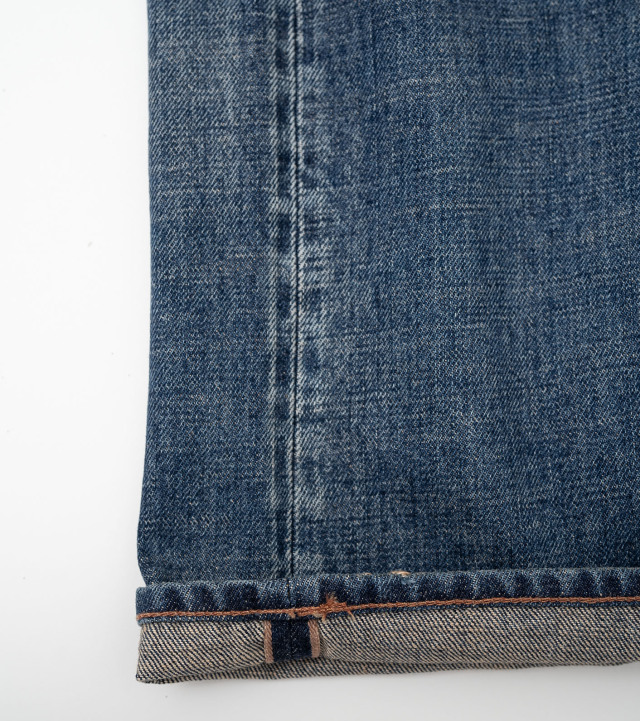 ・旧式のシャトル織機で空気を含みながらゆっくり織り上げたデニムは、生地の目が詰まらず凹凸感のある風合いで、穿いていくごとに体に馴染み、セルビッチデニム独特の色落ちが特徴。