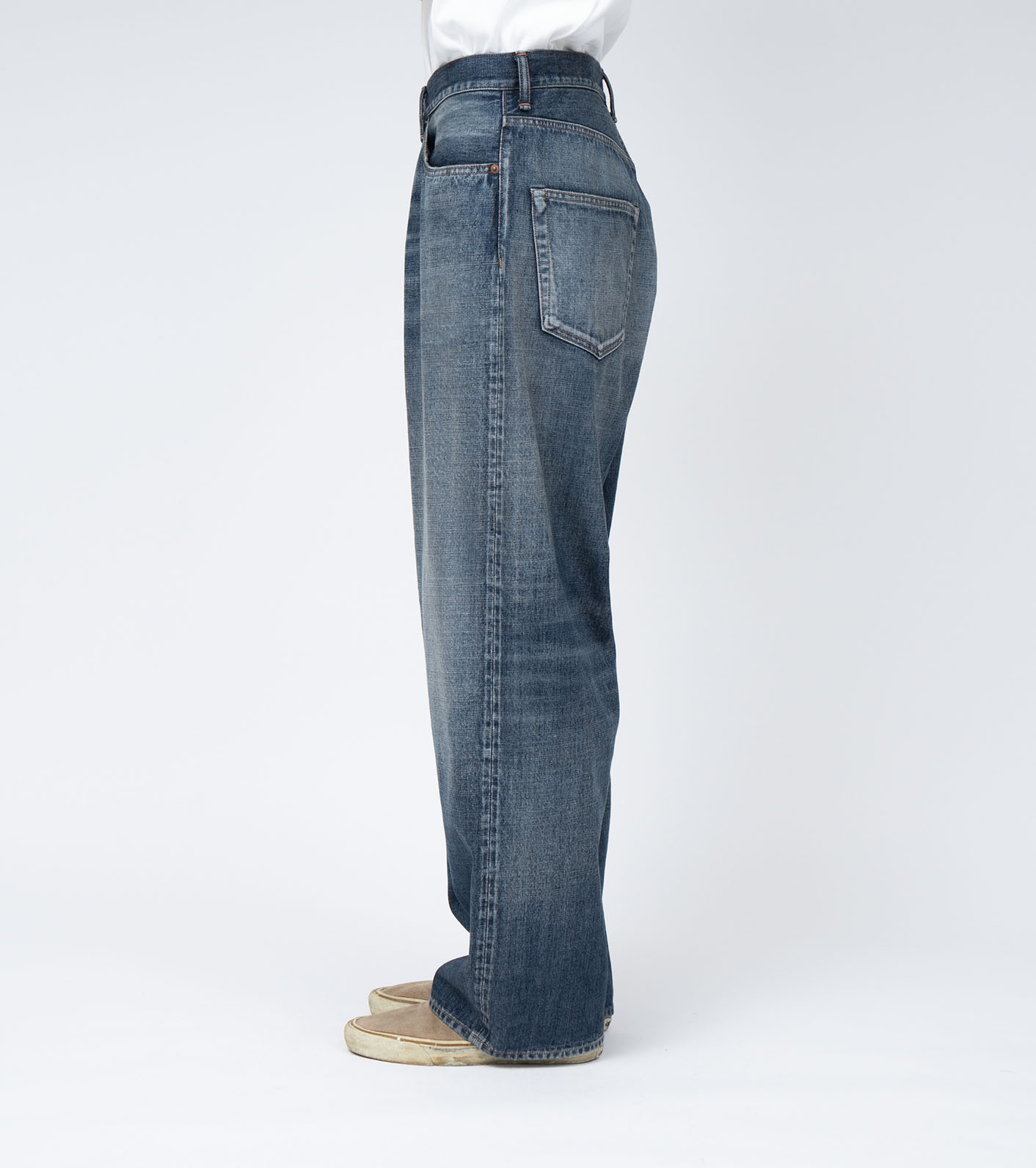 ・ワイドストレートカットの5ポケットデニムパンツ。
