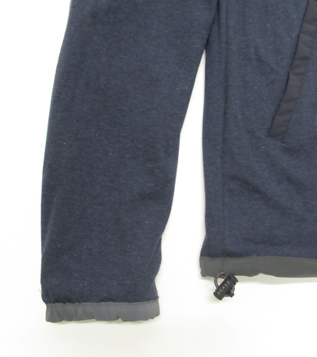 片面にストレッチナイロン生地、もう片面にコットン、カシミヤ混紡の