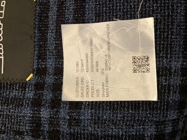 46 着丈73.5 肩幅46 バスト98 ウエスト94 袖丈62 ラペル幅8.5