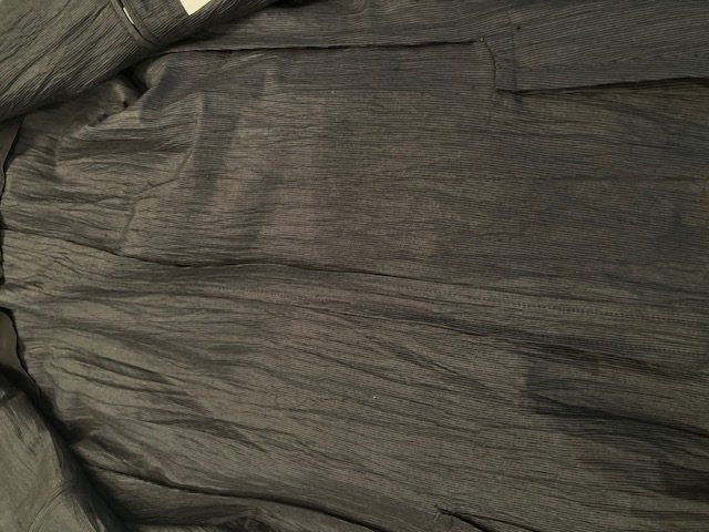 ピンストライプ状の模様があり、まるでシワ加工が施されているような表面感が