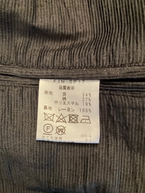 表地:リネン54% コットン27% ポリエステル19%