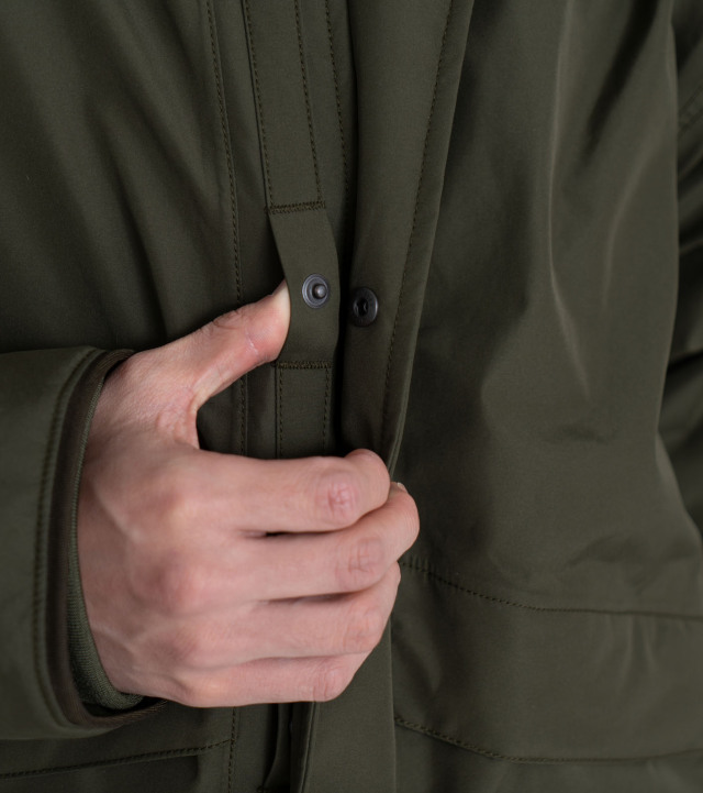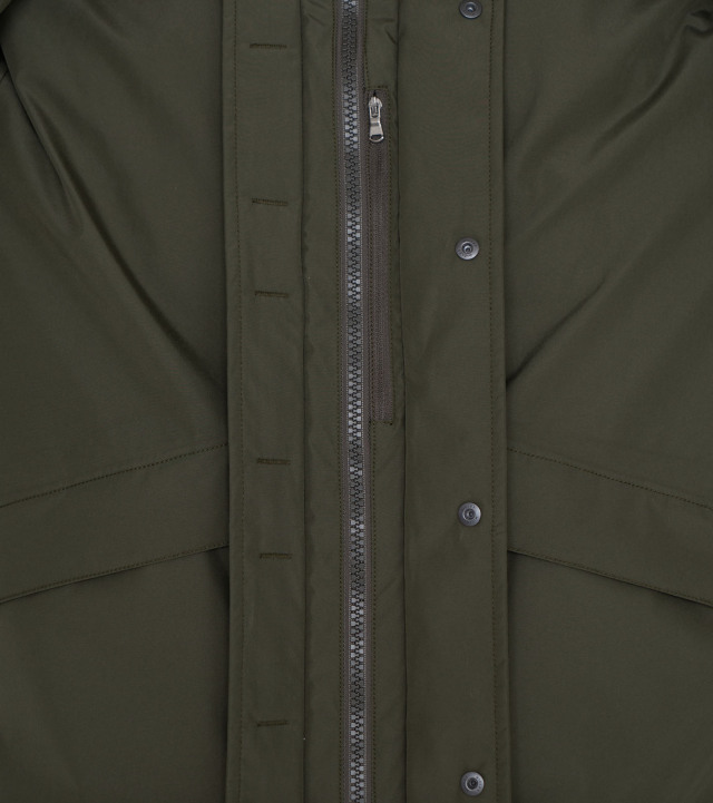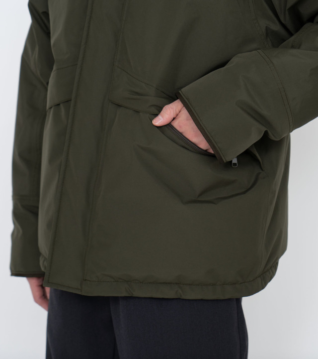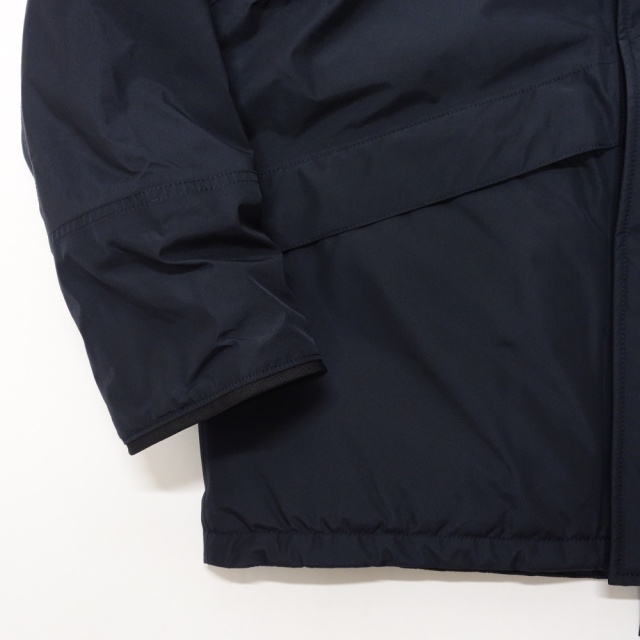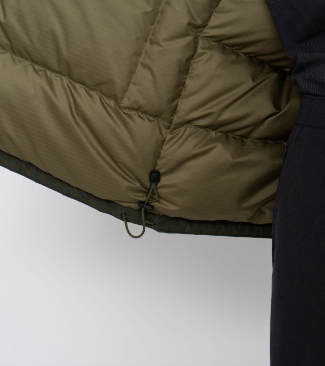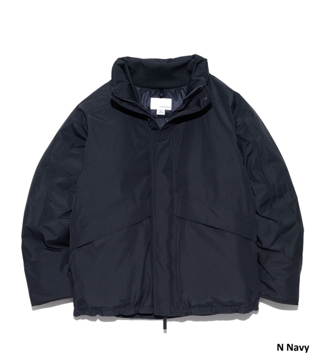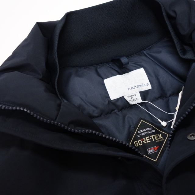 ・ショート丈のスタンドカラーダウンジャケットです。表地には防水透湿素材の2L Polyester GORE-TEX Fabricsを使用し、裏地にはポリエステルリップストップを使用。フロントは片手でもドットボタンが留められるワンハンドスナップ仕様です。