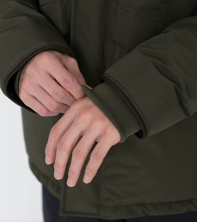 ・首元と袖口には冷気の侵入を防ぐリブ仕様のインナーカラー&カフス。中わたは、体が発する遠赤外線を輻射して保温効果を高める高機能な光電子®ダウンを使用しています。