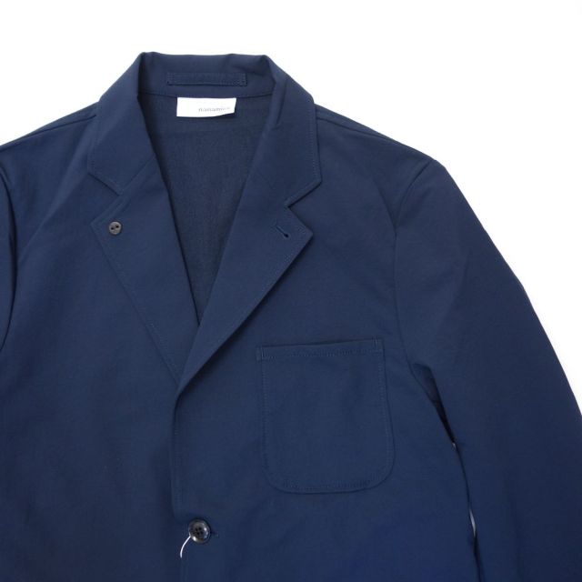 ALPHADRYを使った2ボタンジャケット。ALPHADRYは、吸汗拡散性の高い微多孔質活性粒子のココナパウダーを練り込んだポリエステル繊維です。衣服内をドライで快適に保ちます。カジュアルな雰囲気の3パッチポケットとnanamicaロゴ入りボタンがポイント。腰ポケットはサイドからも手が入るダブル仕様になります。内側には白いドットボタンがアクセントのポケットとモバイルフォンサイズの切替ポケット付き。裏地にはコットンクールマックスダンガリーを使用し、爽やかな印象に仕上げました。