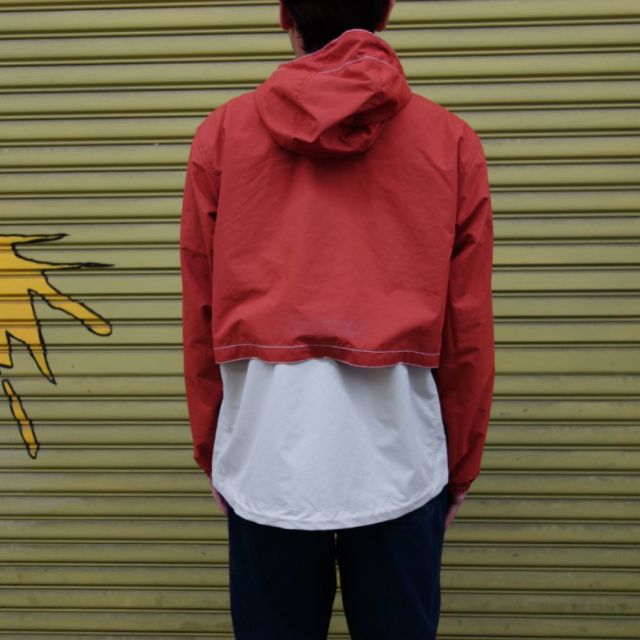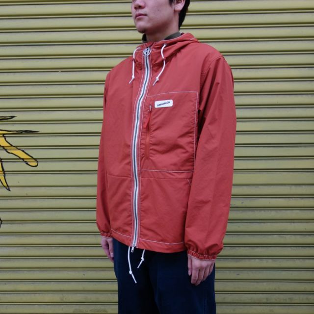 nanamica nanamican Cruiser Jacket / ナナミカ ナナミカンクルーザージャケット NO. SUAS038 COL. N Navy ネイビー / O Orange オレンジ MATERIAL. Polyester Taffeta (Polyester100%) 素材にポリエステルタフタとポリエステルリップストップを使ったクルーザージャケット。1990年代のアウトドアブランドのダウンジャケットをベースにデザイン。太番手の糸を使用しパッカリングを出していくことで、立体的に表現しました。部分的に施した白のステッチがマリンテイストを感じさせます。背中にはイラストレーター「オオニシ アキオ」さんのアートワークをリフレクターでプリントしています。 SIZE XS 着丈71 身幅62 肩幅52 袖丈61 S 着丈73 身幅64 肩幅54 袖丈62 単位:センチ