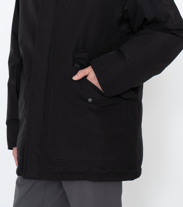 ・前立て裏と腰ポケットのフラップ裏にはファスナー付きのセキュリティーポケット。内側にはマフラーや手袋の収納に便利な大型ポケットをそれぞれ配置。袖口には冷気の侵入を防ぐリブ仕様のインナーカフス仕様で、中わたは体が発する遠赤外線を輻射して保温効果を高める高機能な光電子®ダウンを使用しています。