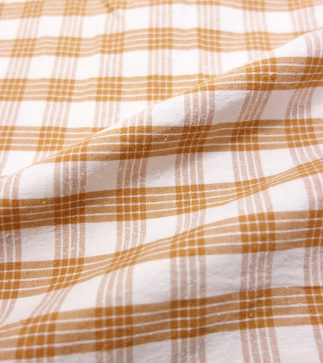 ・経糸にオーガニックコットン、緯糸にオーガニックコットンとスパンシルクを使用した中肉の新規開発素材。柄はハワイのワークウェアに使用されていたパラカチェックをベースに着古したネルシャツのような褪せた色を表現しています。