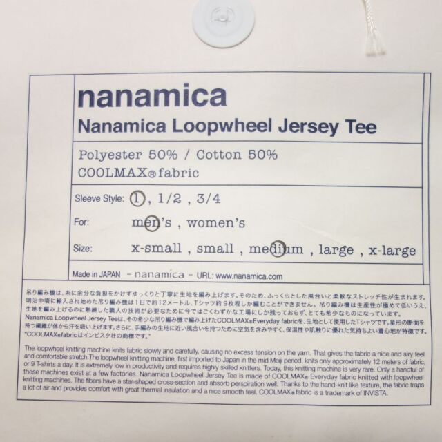 | 製品名: | SUHF146 nanamica Loopwheel COOLMAX Jersey L/S Tee ナナミカ ループウィール クールマックス ジャージー ロングスリーブティー |