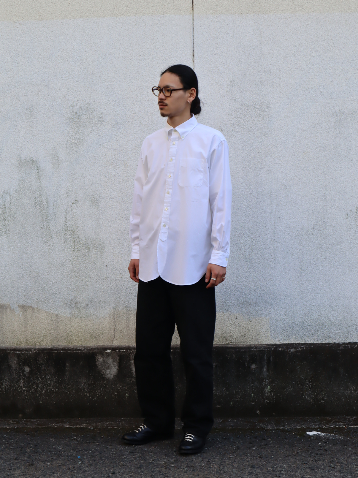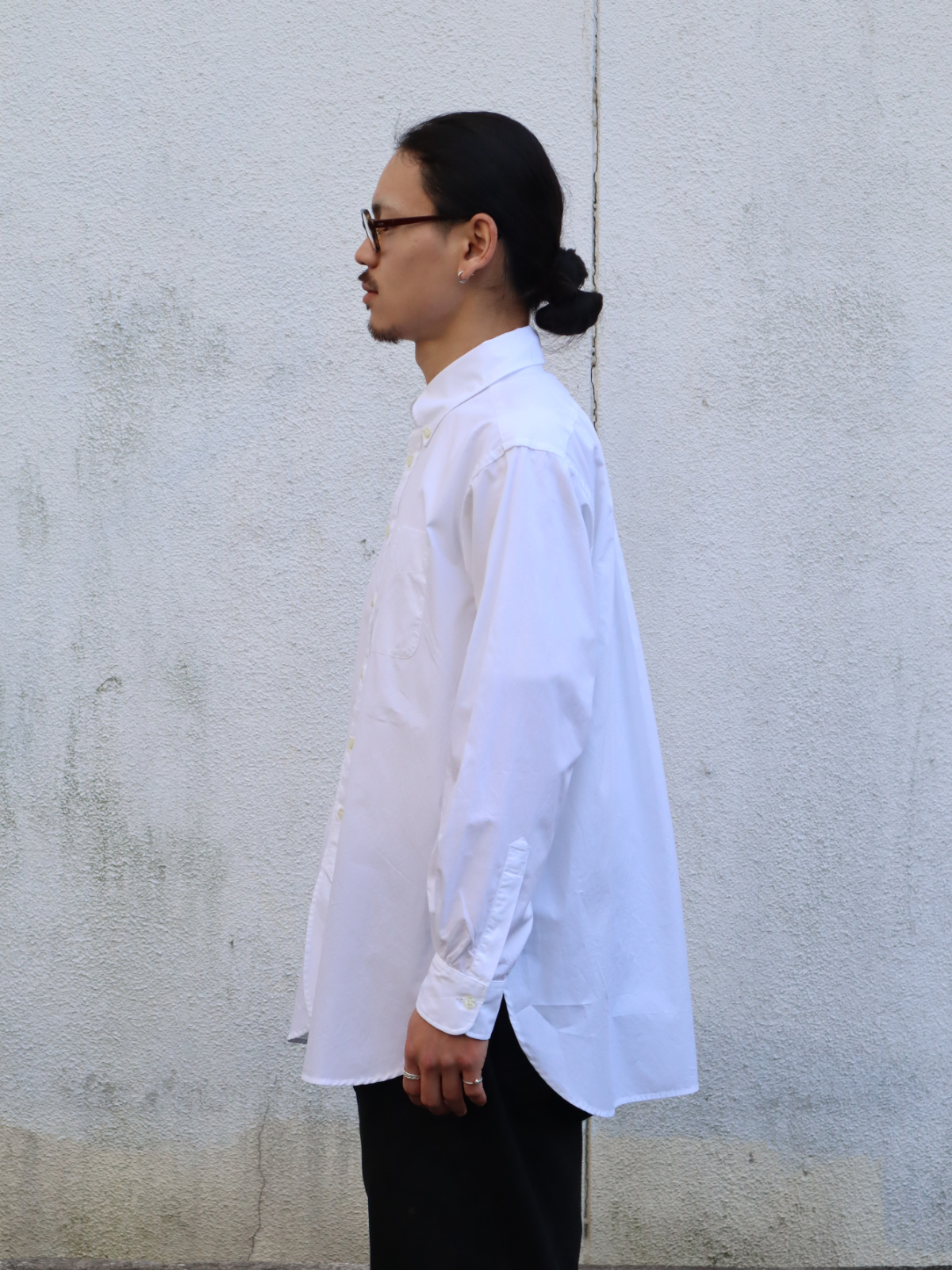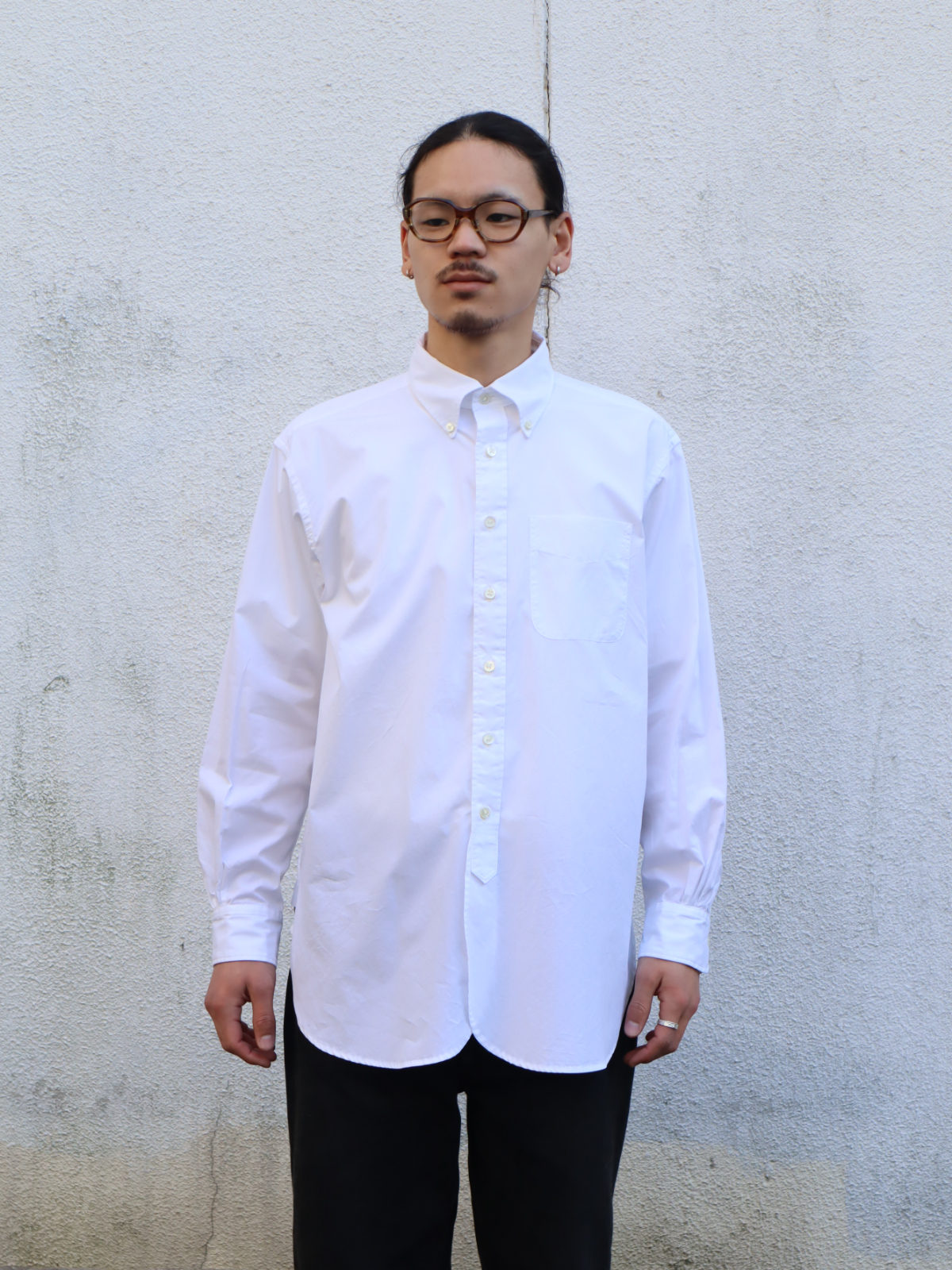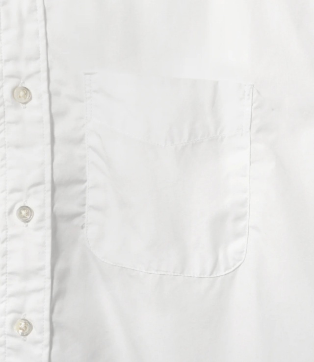 19世紀に作られたドレスシャツをモチーフにデザインされた、〈ENGINEERED GARMENTS〉を代表する定番ボタンダウンシャツ。重なり合うようにラウンドした裾のデザインや、脇下のガゼット、深く取られたサイドスリットなど、クラシックなドレスシャツに見られるディテールが多数取り入れられています。縫製は手間と時間のかかるシングルニードルで行われており、縫い目の美しさと高い耐久性を兼ね備えています。シルキーな光沢感のブロードクロスを使用し、あえて洗いをかけることで独特の表情を引き出しています。